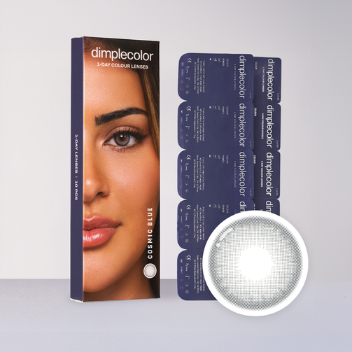 Our Lunar Eclipse lenses feature a soft limbal ring that adds depth and dimension. The perfect balance between icy sophistication and dreamy depth, Cosmic Blue enhances your gaze with a subtle celestial glow, mimicking the tranquil hues of a twilight sky.