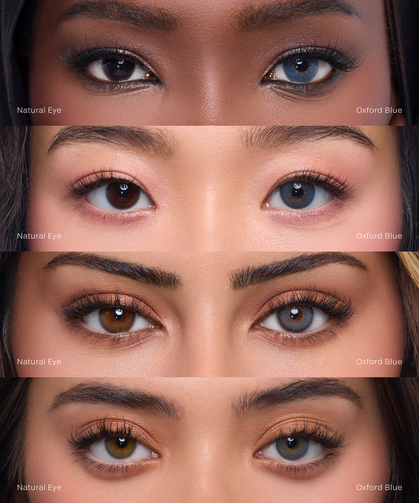 Oxford Blue is a three-tone lens that features deep, regal shade inspired by the richness of twilight skies and the elegance of navy accents. This darker hue is thoughtfully designed to create a beautifully realistic blue effect on brown eyes.