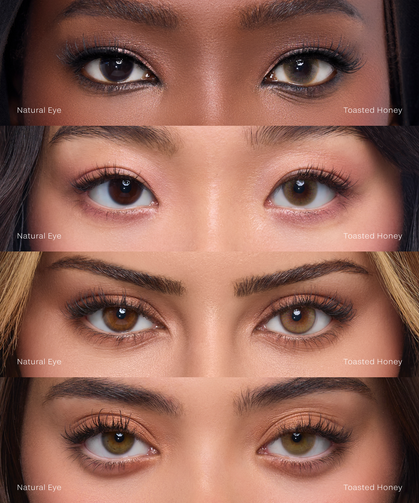 With warm honeycomb highlights, our one-tone Toasted Honey lenses make every gaze sweet. The toasted honey tone is versatile and flattering, making it a great choice for just about any eye color, giving them a warm, golden glow.